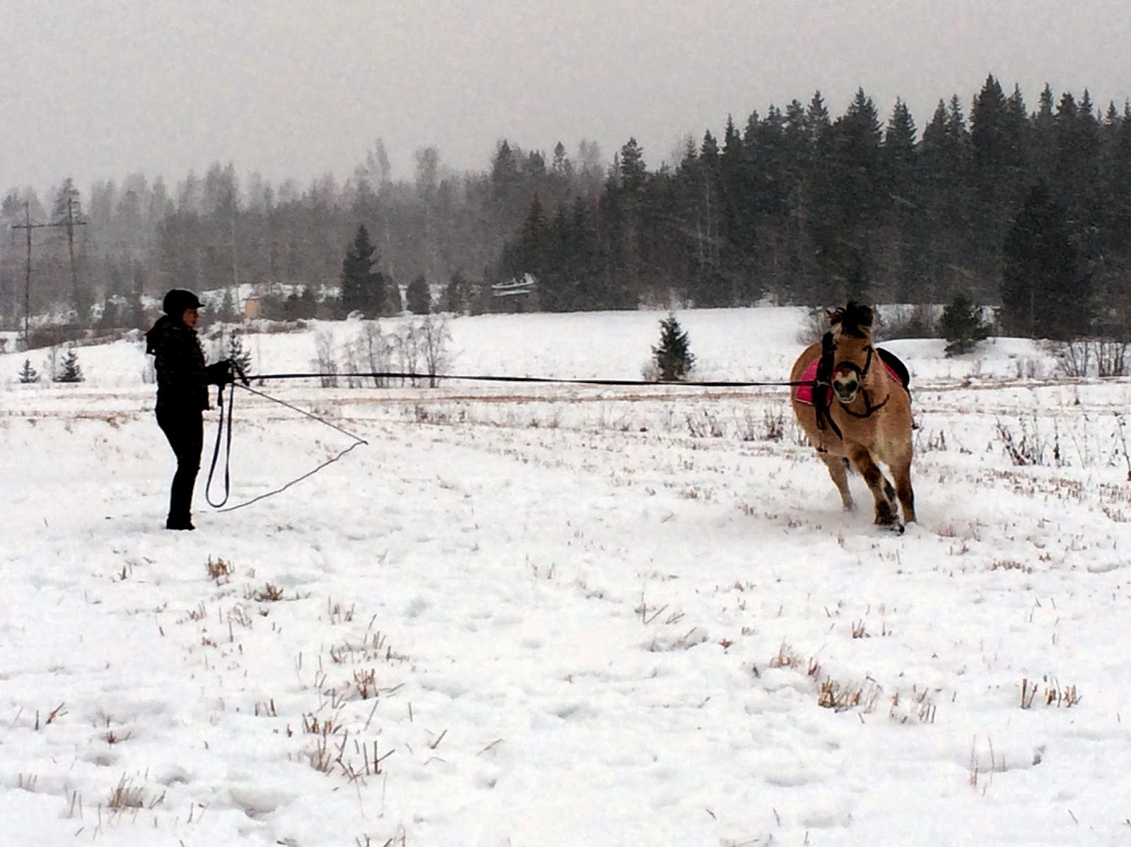 Muutamasta hölmöilystä huolimatta Iitu nosti laukan liinassa pyynnöstä.Ehdin kuvaamaan myös muutaman pätkän videolle. Valitettavasti ne "action" -pätkät jäi kuvaamatta, mutta kyllä Iitu tässäkin videossa vähän kokeilee ja tuijottelee kovasti "mammaa" kun seison vieressä kuvaamassa.